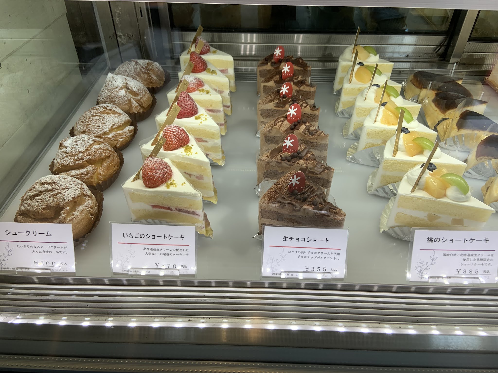 いちごのミルフィーユ・ショコラノワゼット・贅沢フルーツタルト・モンブラン・メロンショート・フルーツショート・カマンベールチーズケーキ・バスクチーズケーキ・桃のショート・苺のショート・シュークリーム