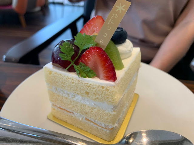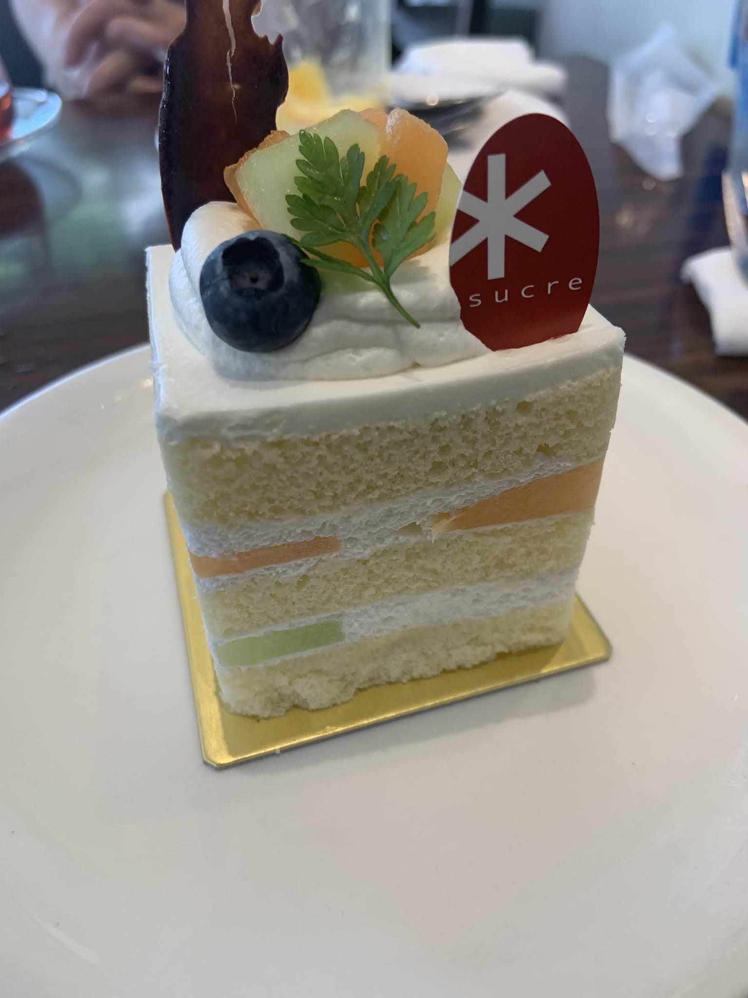 緑と赤の果肉2種類のメロンがたっぷりと入ったショートです。やっぱりシュクレさんのショートは甘さのバランスが絶妙!メロンの甘さを引き立たせてくれる上品な生クリームとスポンジを口に含むと笑みが止まりません?